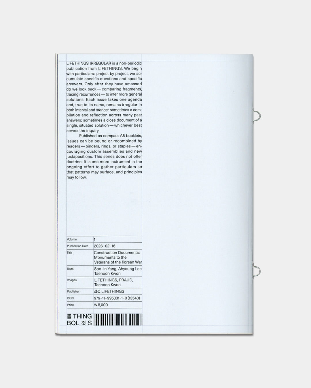 이번 호는 한 프로젝트가 현실이 되기 직전, 잠시 허락되는 가장 선명한 건축의 상태로서 ‘실시설계도서’를 바라봅니다. 건축가는 시공 과정에서 수많은 조율과 수정이 뒤따를 것을 알면서도, 도면 한 장 한 장에 명확한 의도와 타협 없는 의지를 새겨 넣습니다. 한국전쟁 참전용사 기념 조형물의 실시설계도서를 펼쳐 보며 그 안에 또렷하게 기록된 계약과 책임, 의도와 판단을 읽어 봅니다.